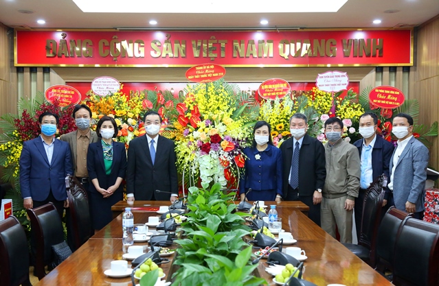 Chủ tịch UBND TP Chu Ngọc Anh chúc mừng Ban Bảo vệ, chăm sóc sức khoẻ cán bộ Trung ương nhân Ngày Thầy thuốc Việt Nam. Ảnh: Thiện Tâm